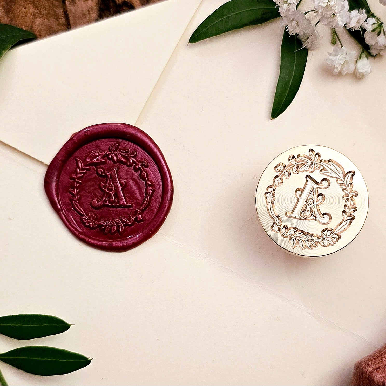 Siegelstempel "A - Buchstabensiegel mit Blütenkranz" aus Messing, SKU: SIG-05-A