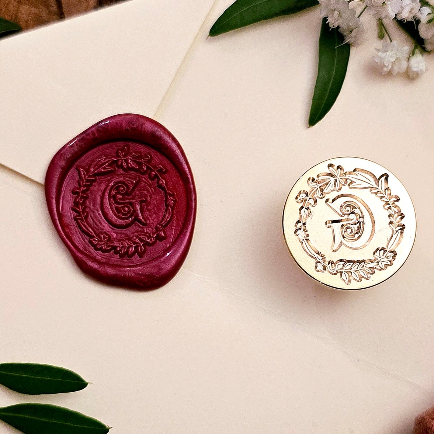 Siegelstempel "G - Buchstabensiegel mit Blütenkranz" aus Messing, SKU: SIG-05-G