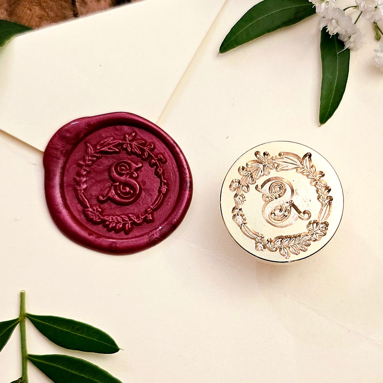 Siegelstempel "S - Buchstabensiegel mit Blütenkranz" aus Messing, SKU: SIG-05-S